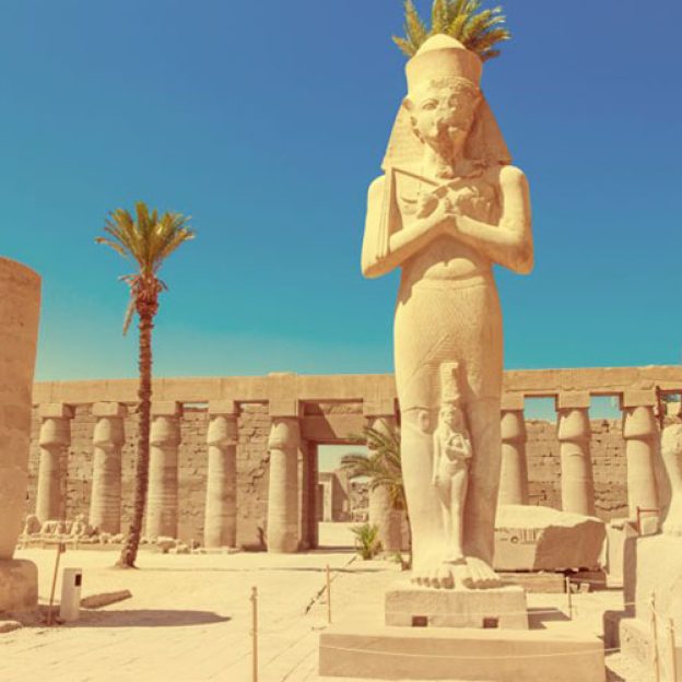 After breakfast, transfer to Cairo airport for a flight to Luxor. Upon arrival, visit Karnak and Luxor Temples. Then, check in on the 5-star Nile cruise and enjoy lunch onboard.